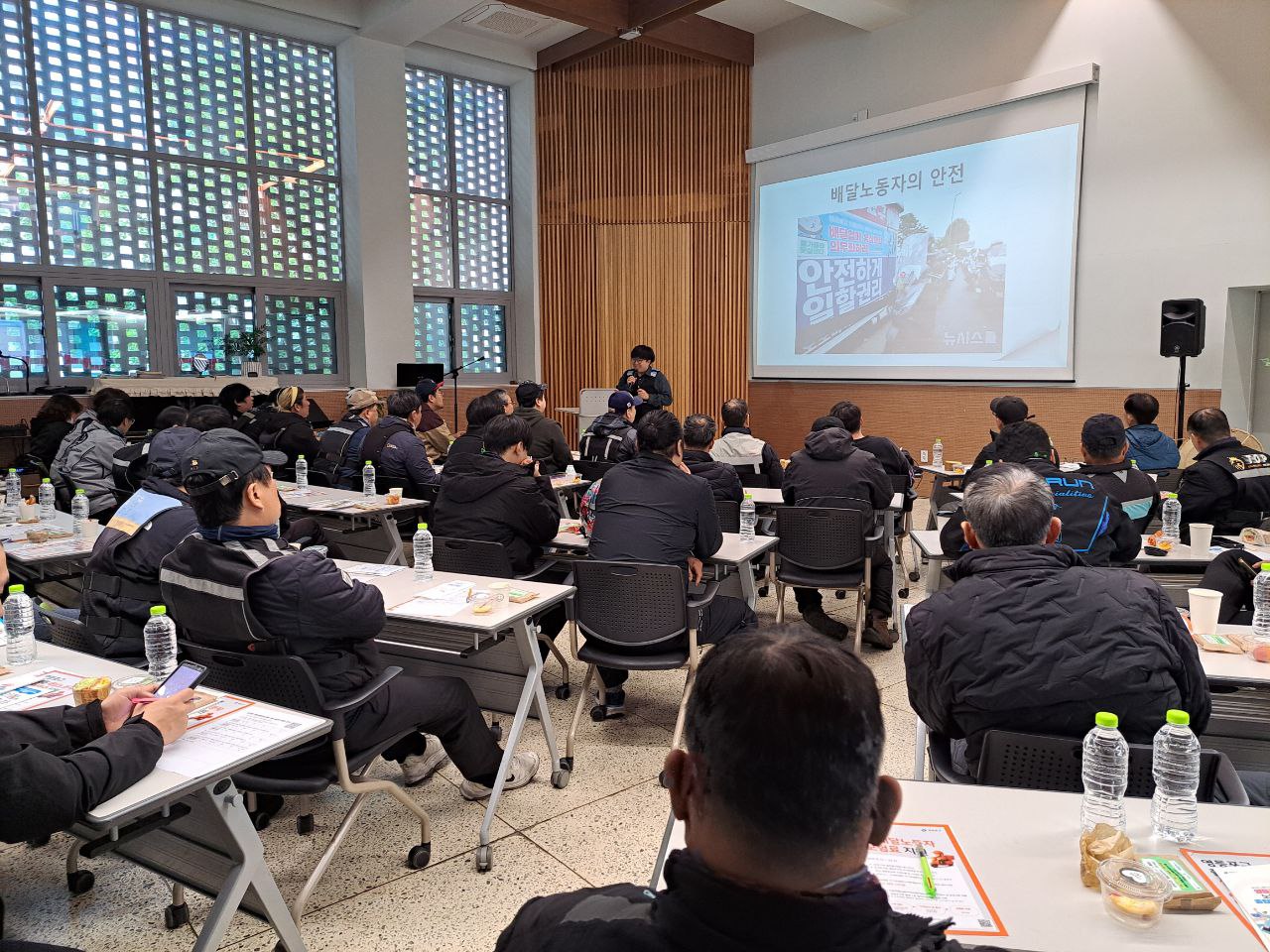 이번 안전교육은 배달플랫폼 노동조합의 김정훈 지부장님, 라이더유니온의 전성배 지회장님께서 강의해주셨는데요, 안전에 대한 이야기는 정말 매일매일 듣더라도 놓치지 말아야 할 중요한 이야기인 것 같습니다 !